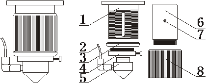 1.聚焦鏡內(nèi)筒 2.進(jìn)氣管 3.限位螺圈 4.氣嘴過(guò)渡套5.氣嘴 6.鏡筒 7.限位螺絲 8.調(diào)節(jié)套筒.