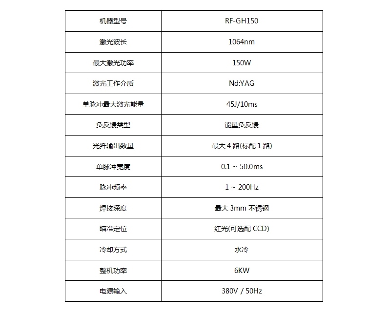 三、RF-GH150單光路光纖激光焊接系統的技術參數: