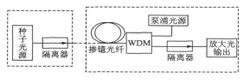 MOPA 結構光源如圖所示 : 主要分兩部分 , 左邊虛框內是一個具有高光束質量輸出的種子光源 , 右邊虛框內是一級或幾級光纖放大器結構 , 兩部分共同構成一個主振蕩功率放大光源。